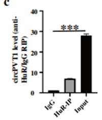 c RIP confirmed the relationship between circPVT1 and HuR in H520 cells. GAPDH mRNA was used as a non-HuR target control.