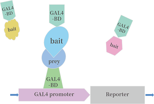 ºË½Íĸµ¥/Ë«ÔÓ½»ÏµÍ³ÔÀí£º½Íĸת¼Òò×ÓGal4°üÀ¨DNAÁ¬Ïµ½á¹¹Óò£¨Gal4-BD£©ºÍת¼¼¤»îÓò£¨Gal4-AD£©£¬£¬£¬£¬£¬£¬ÓÕ¶ü£¨prey£©ÓëGal4-BDÈںϣ¬£¬£¬£¬£¬£¬ÁÔÎbait£©×ðÁú¿Ê±ÓëGal4-ADÈںϣ¬£¬£¬£¬£¬£¬µ±ÓÕ¶üºÍÁÔÎﱬ·¢Ï໥×÷ÓÃʱ£¬£¬£¬£¬£¬£¬Gal4-BDºÍGal4-ADÔÚ¿Õ¼äÉϳä·Ö¿¿½ü£¬£¬£¬£¬£¬£¬¿É·ºÆðÍêÕûµÄGAL4ת¼Òò×Ó»îÐÔ£¬£¬£¬£¬£¬£¬Æô¶¯¼¤»î±¨¸æ»ùÒòAUR1-C¡¢ADE2¡¢HIS3ºÍMEL1µÄת¼¡£¡£¡£¡£