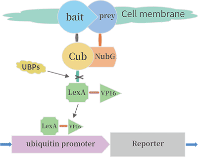 Ĥ½Íĸ˫ÔÓ½»ÏµÍ³ÔÀí£º·ºËØubiquitin°üÀ¨N ¶Ë£¨Nub£©£¬£¬£¬£¬£¬£¬C ¶Ë£¨Cub£©½á¹¹Óò¡£¡£¡£¡£Ê×ÏÈ£¬£¬£¬£¬£¬£¬ÈËΪµÄ½«·ºËØ NubµÄµÚ3λÒìÁÁ°±ËáÍ»±äΪ¸Ê°±ËᣨNubI Í»±äΪ NubG£©¡£¡£¡£¡£ÕâÑùÓë Cub µÄÇ×ÐÁ¦´ó´ó½µµÍ£¬£¬£¬£¬£¬£¬×èÖ¹ÁË Cub ºÍ Nub ×ÔÎÒÁ¬Ïµ»ò¿¿½üµÄ¿ÉÄÜÐÔ¡£¡£¡£¡£ÔÚCub½á¹¹ÓòÈÚºÏLexA-VP16 ת¼¼¤»îÒò×ÓÐγÉCub-LexA-VP16¡£¡£¡£¡£ÓÕ¶ü×ðÁú¿Ê±£¨prey£©ÓëNubGÈںϣ¬£¬£¬£¬£¬£¬ÁÔÎï×ðÁú¿Ê±£¨bait£©ÓëCub-LexA-VP16Èںϡ£¡£¡£¡££¬£¬£¬£¬£¬£¬µ±µ±ÓÕ¶üºÍÁÔÎﱬ·¢Ï໥×÷ÓÃʱ£¬£¬£¬£¬£¬£¬ NubG ºÍ Cub µÄÏ໥¿¿½ü£¬£¬£¬£¬£¬£¬Á¬Ïµ£¬£¬£¬£¬£¬£¬ÐγÉÍêÕû·ºËØubiquitin£¬£¬£¬£¬£¬£¬´Ó¶ø±» UBPs øʶ±ð£¬£¬£¬£¬£¬£¬µ¼Ö LexA-VP16 µÄ¼ôÇУ¬£¬£¬£¬£¬£¬½øÈëºËÄÚ£¬£¬£¬£¬£¬£¬´Ó¶ø¼¤»î±¨¸æ»ùÒòAUR1-C¡¢ADE2¡¢HIS3ºÍMEL1µÄת¼¡£¡£¡£¡£